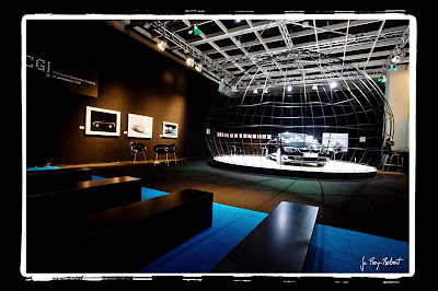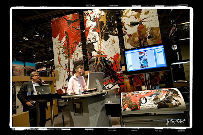 Les grosses cylindrées allemandes sont à gagner par tirage au sort Sur le stand HP un artiste crée en live une ouvre d’art avec un commentaire en anglais de Philippe Sérillon ancien de Kodak!!!